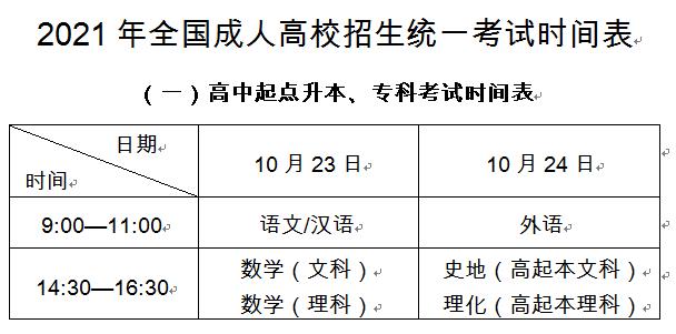 2021年全国成年人院校录取标准化笔试将于10月23日、24日举办