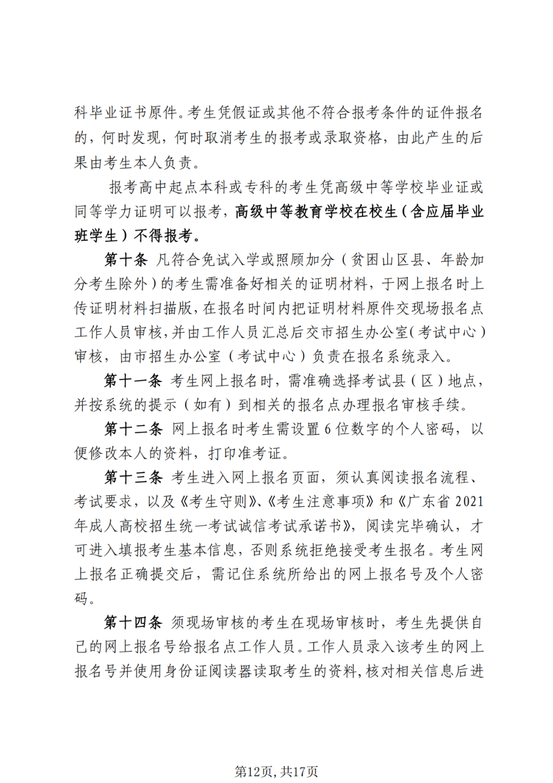 考生报名者条件依据《珠海市2021年成年人高等学校录取组织工作规定》(粤招〔2021〕6号附件)执行。