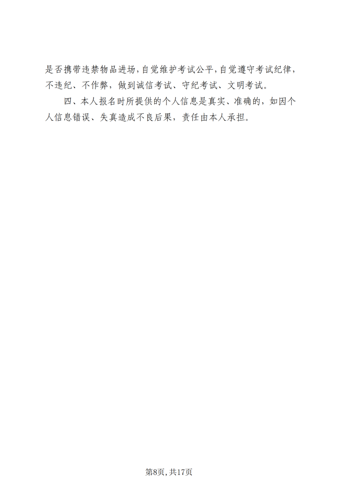 2.交验资格证明材料。考生须按明确要求提供相关的学历证明或符合照顾政策证明材料。考生凭无效证件或其他不符合报考条件的证件,获得报名者、笔试、入学资格的,何时发现,何时取消考生的录取资格,由此产生的后果由考生本人负责。因考生不及时认证,造成不能参加笔试和录取的,责任由考生自负。